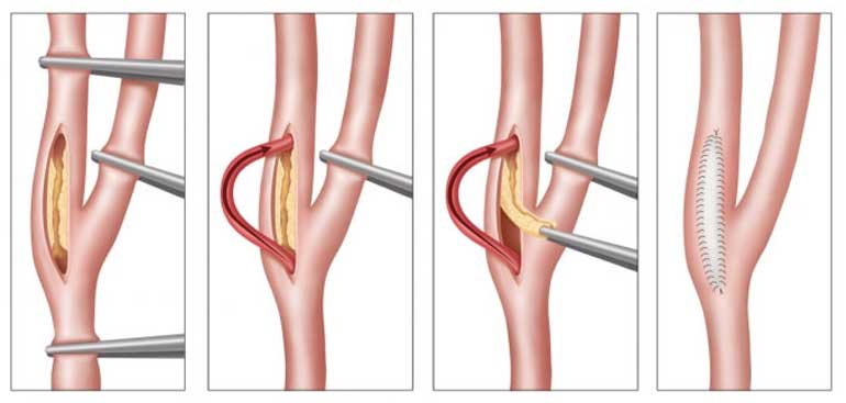 A carotid endarterectomy is a surgical procedure to remove plaque buildup from the carotid arteries and improve blood flow to the brain. During the procedure, a surgeon: Makes an incision in the neck over the affected artery, Opens the artery, Removes the plaque, Stitches or patches the artery back together, and Closes the incision.